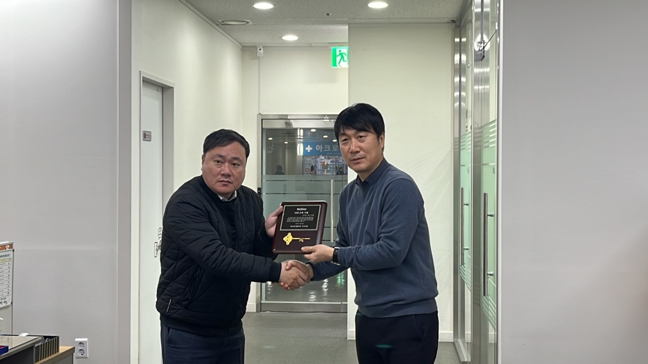 넥스버 인원 모두 한마음 한 뜻으로 민지홍 부장님의 10년 동안 회사를 위해 열심히 일해주신 것에 대하여 축하 행사를 진행 하였습니다.