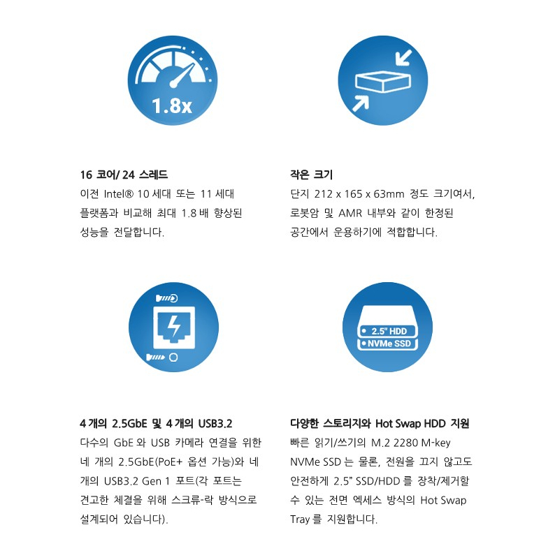 212 x 165 x 63mm의 작은 크기에도 불구하고, 전작인 Intel 11세대 플랫폼과 비교해 최대 1.8배의
