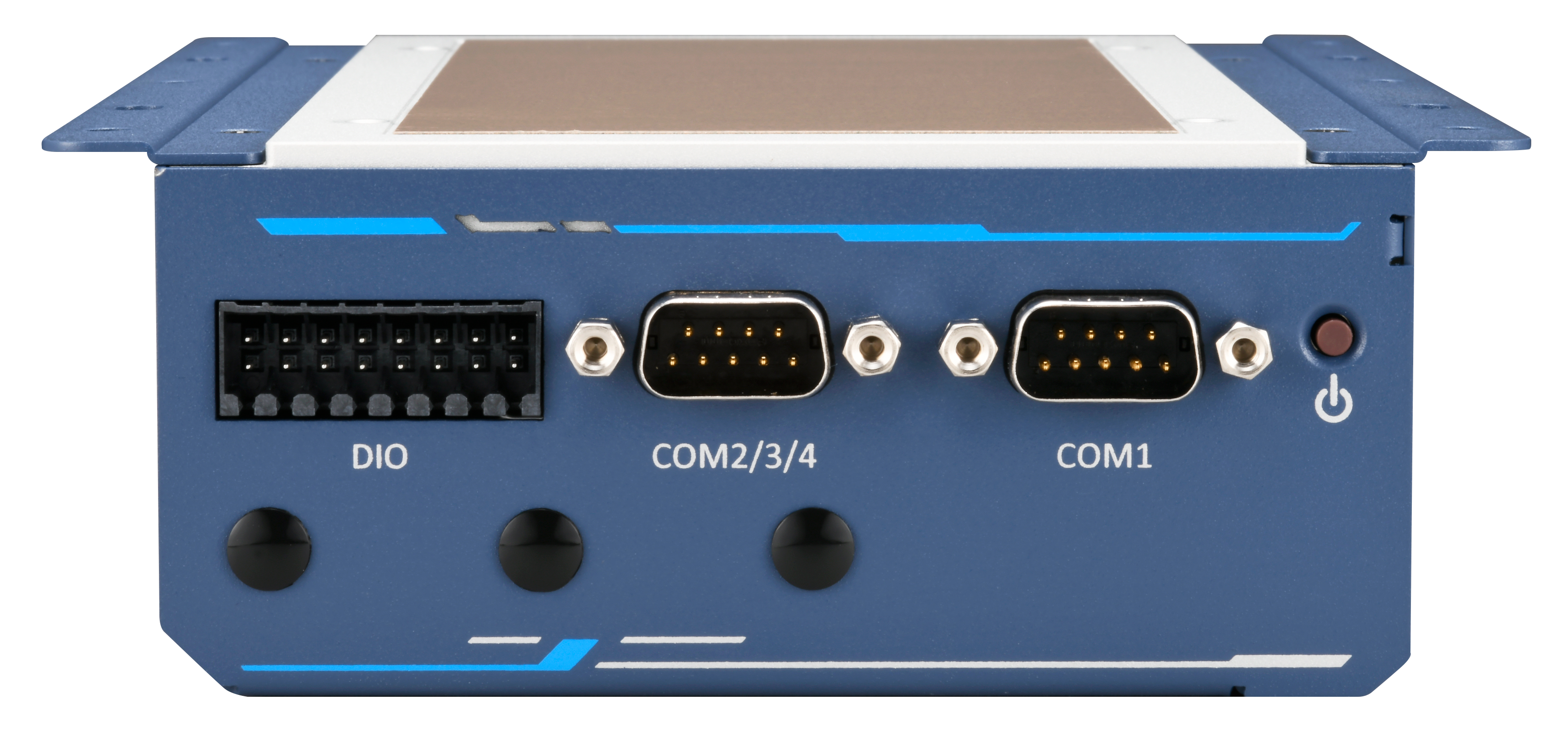 COM 포트는 총 4개(1x RS-232/422/485, 3x RS-232)로 구성되어 있으며, 4채널 절연 DI 및 4채널 절연 DO 디지털 입출력 포트는 센서 및 액추에이터 제어를 위한 인터페이스로 활용됩니다.