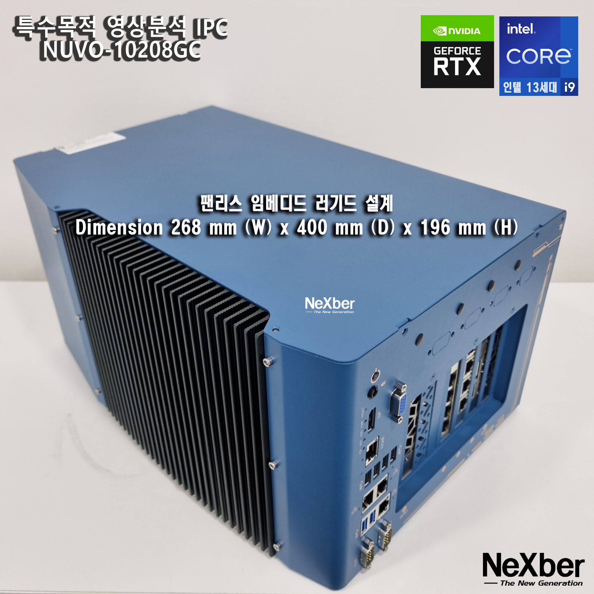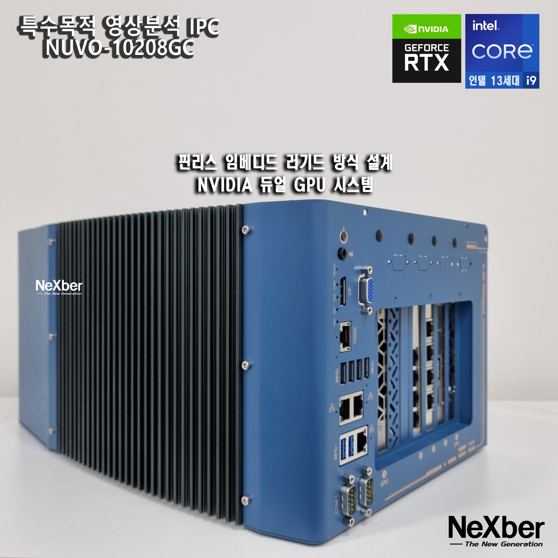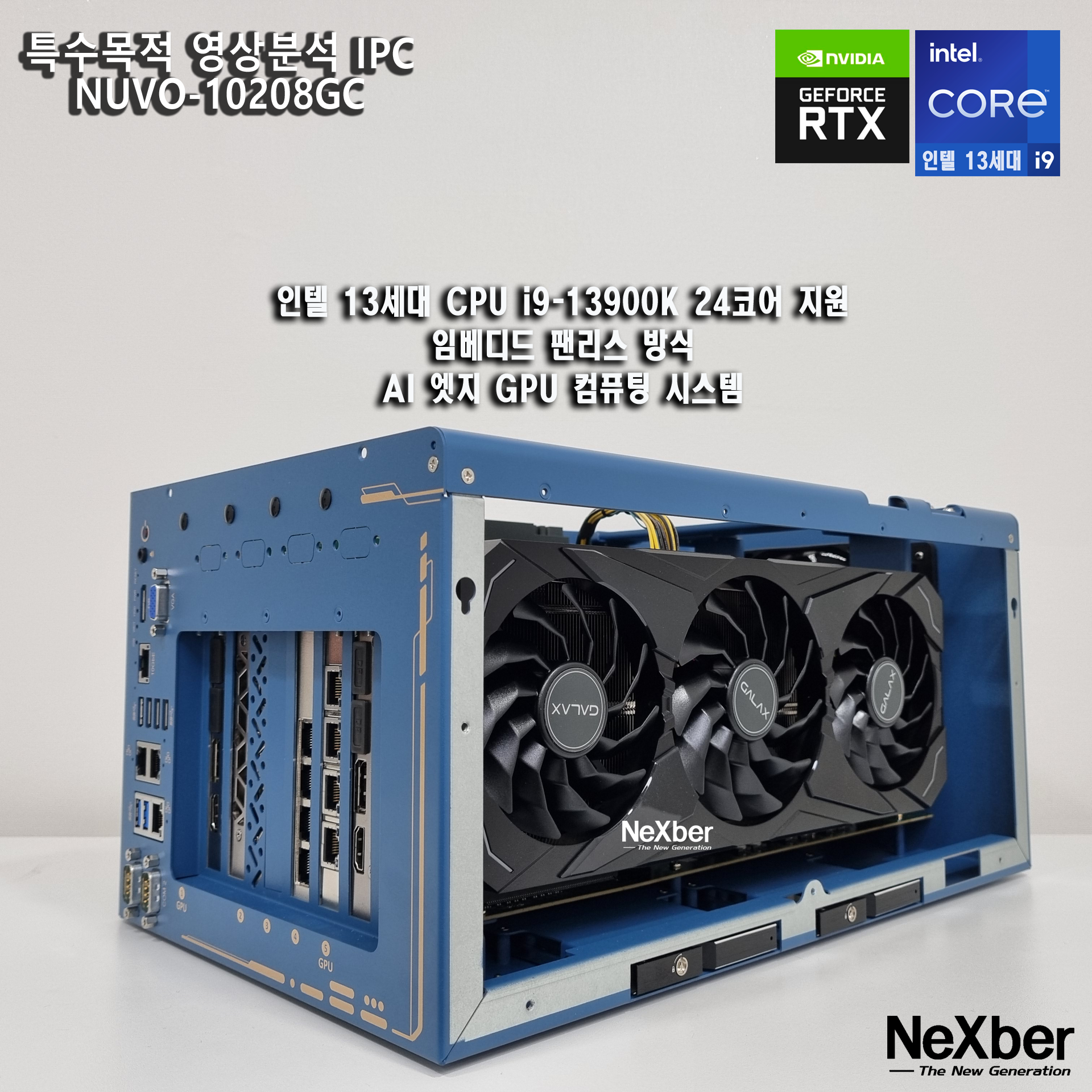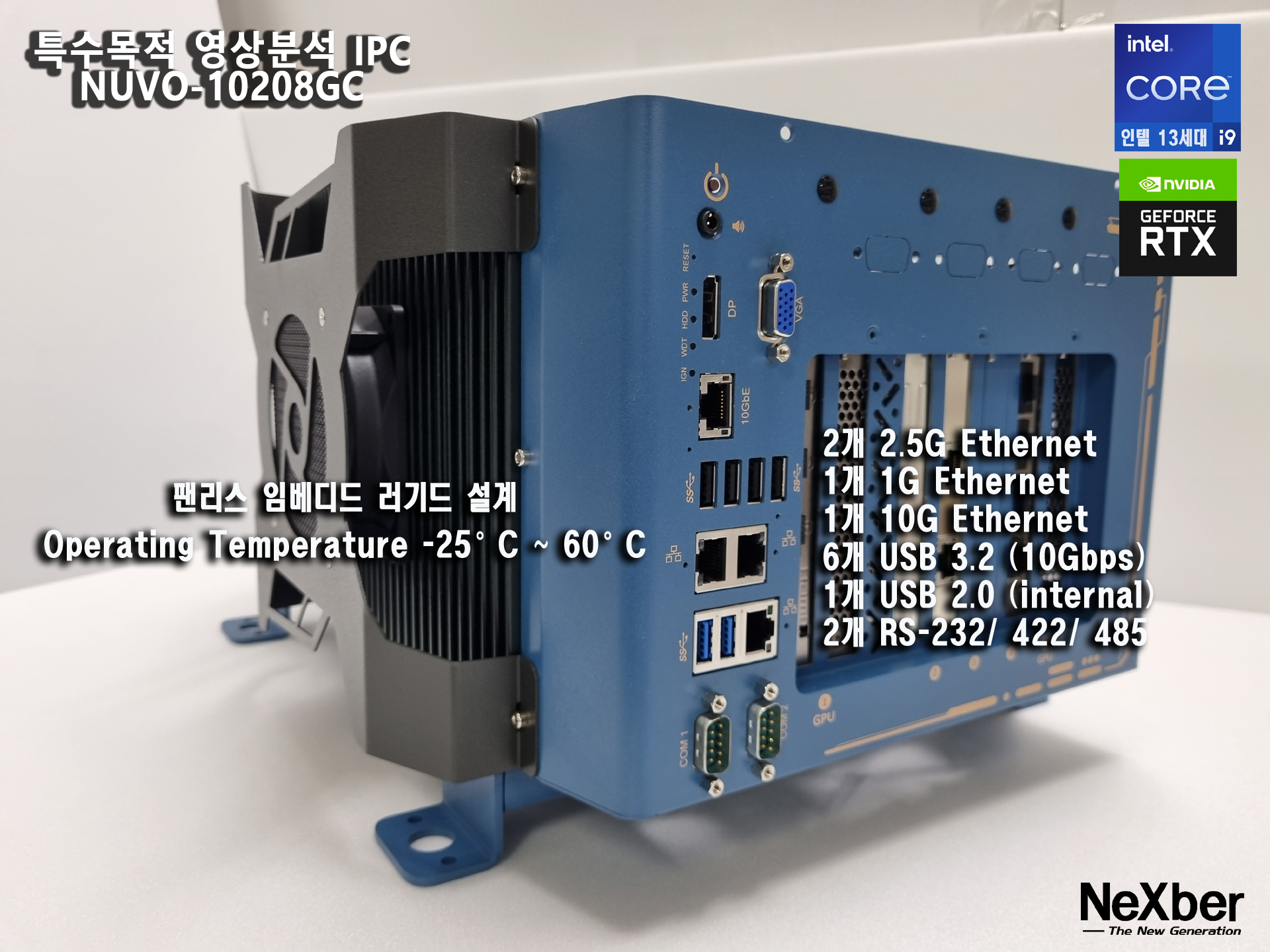 Neousys 러기드 산업용 컴퓨터 NUVO-10208GC 는 Intel 13세대 Core CPU i9-13900K 까지 지원하며CPU 쿨러가 없는 강력한 팬리스 기반의 AI 추론 및 영상분석을 위한 컴퓨터입니다.